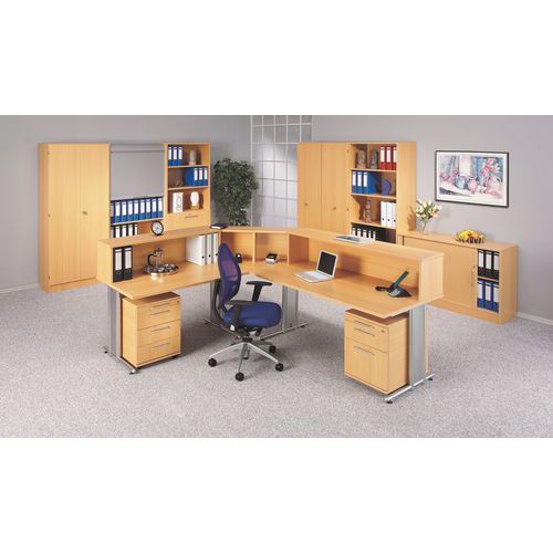 Espaço que permite a arrumação de pastas. Guichet fácil de montar.