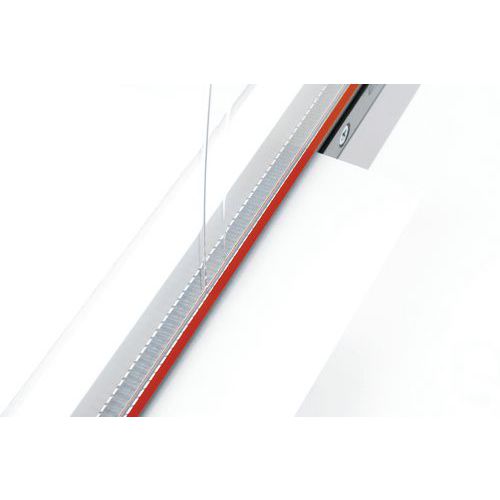 - Resguardo de proteção transparente e indicação do risco de corte integrada, permite ver devidamente o risco de corte a todo o comprimento.