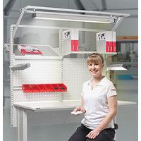 Iluminação regulável para posto de trabalho. Ilumine totalmente a sua bancada de trabalho. Indicado para bancadas de trabalho TNL. Temperatura de cor de 4000K. Fabricado na UE