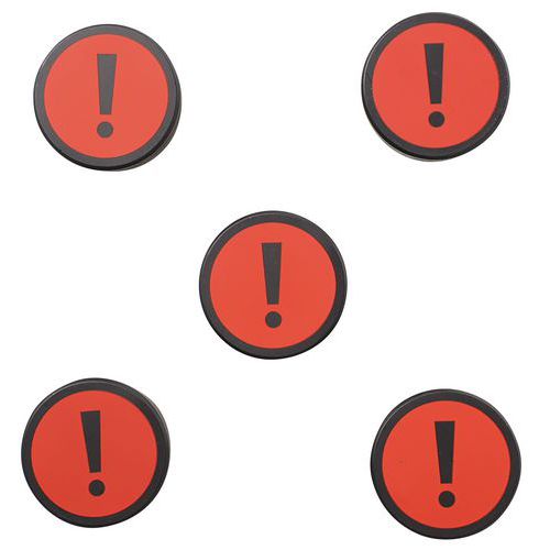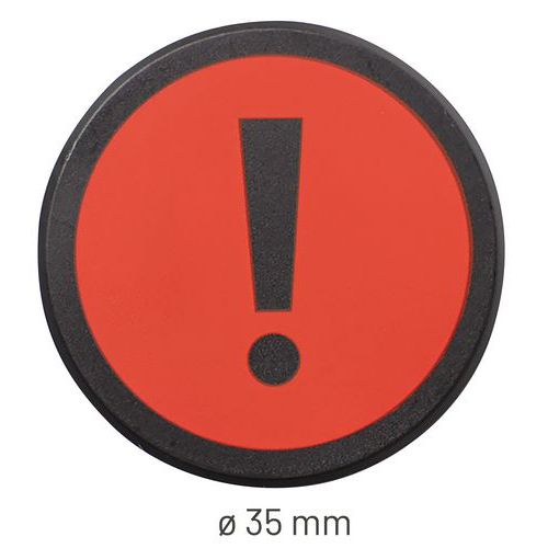 Íman redondo com sinal Ponto de exclamação, Tipo: Ponto de exclamação, Cores: Vermelho, Ø: 35 mm Íman redondo com sinal Ponto de exclamação, Tipo: Ponto de exclamação, Cores: Vermelho, Ø: 35 mm