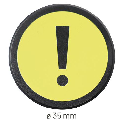 Íman redondo com sinal Ponto de exclamação, Tipo: Ponto de exclamação, Cores: Amarelo, Ø: 35 mm Íman redondo com sinal Ponto de exclamação, Tipo: Ponto de exclamação, Cores: Amarelo, Ø: 35 mm