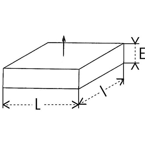 Íman retangular, Comp.: 20 mm, Largura: 10 mm, Espessura: 5 mm, Densidade: 7.5 g/cm³