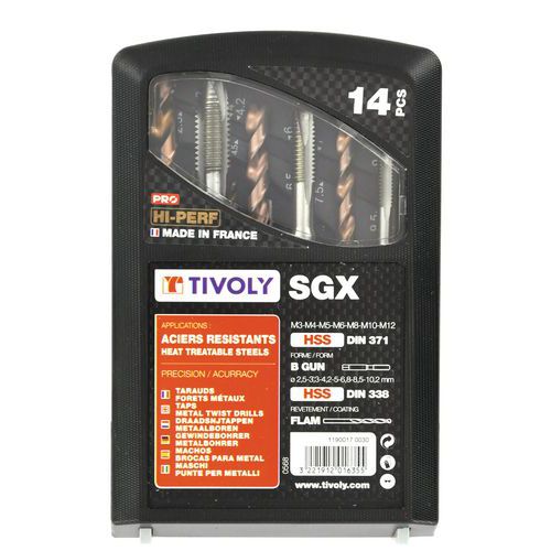 | Nome do artigo | Jogo de brocas + roscas HSS Fusio, N.º de peças: 14, Utilização: Perfuração, Ref. Fabricante: 11900170030 |