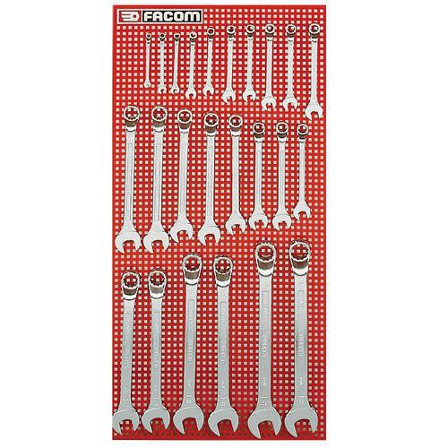 Jogos de chaves mistas com luneta desviada métricas, N.º de chaves: 18, Catraca reversível: não
