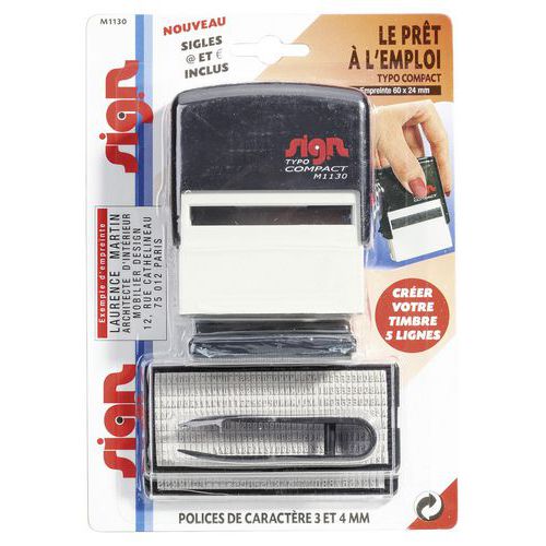 | Nome do artigo | Kit carimbo pronto a utilizar Compact Typo 5 linhas – Sign, N.º de linhas: 5, Perfil cor: Preto |