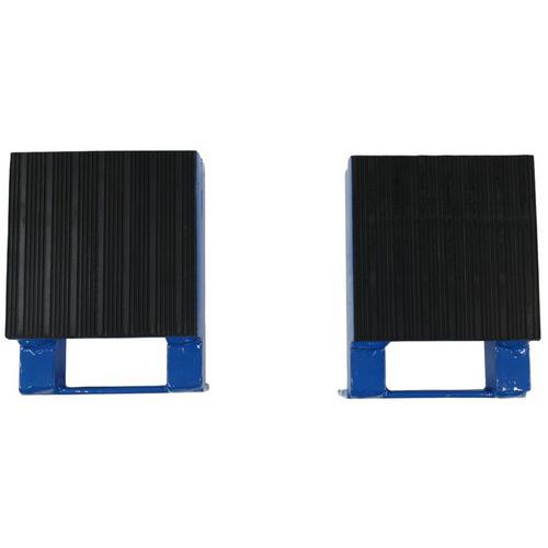 Kit de base rolante metálico para a movimentação de cargas pesadas. A base rolante e as plataformas giratórias têm um revestimento antiderrapante em borracha. Rodas em nylon resistente ao desgaste. Caixa bloqueável com rodízio para um manuseamento simplificado.