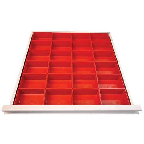 Solução de organização em plástico para gaveta de bancada. Organize o interior da sua gaveta com a ajuda de 12 pequenas caixas amovíveis.