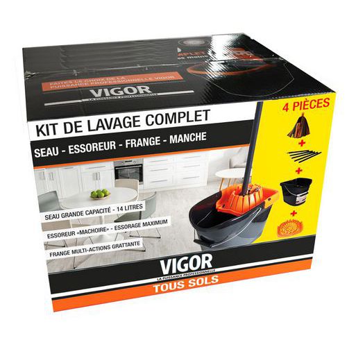 | Nome do artigo | Kit de esfregona para limpeza de pavimentos – Vigor, Cores: Preto/laranja |