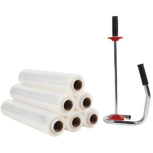 | Nome do artigo | Kit de filme estirável transparente com desenrolador metálico, Espessura: 20 µm, Comp.: 300 m, Larg.: 500 mm |