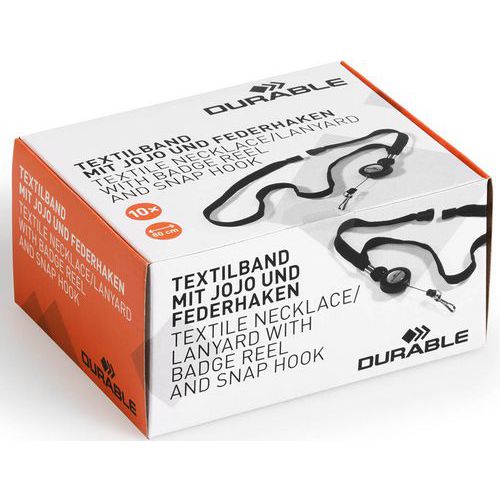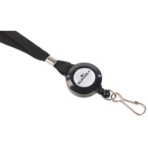 | Nome do artigo | Fita em tecido com enrolador e fixação por mosquetão – Durable, Cores: Preto, Comprimentos: 801 mm |