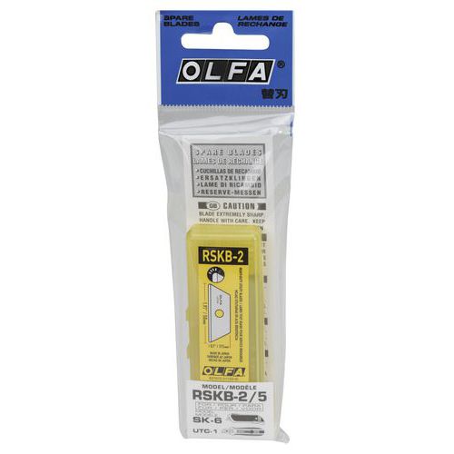 | Nome do artigo | Estojo com 5 lâminas RSKB-2/5 para faca de segurança, modelos SK – 17,5 mm – Olfa, Material: Aço |