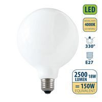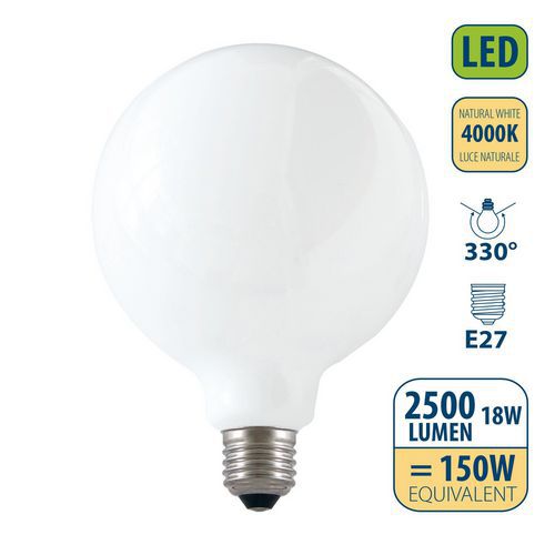 Lâmpada com filamentos LED opal 18 W globo G125 E27 Com uma vida útil de 20 000 horas (bastante superior aos modelos padrão do mercado), esta lâmpada é capaz de durar mais de 15 anos (com uma utilização diária de 3 horas).