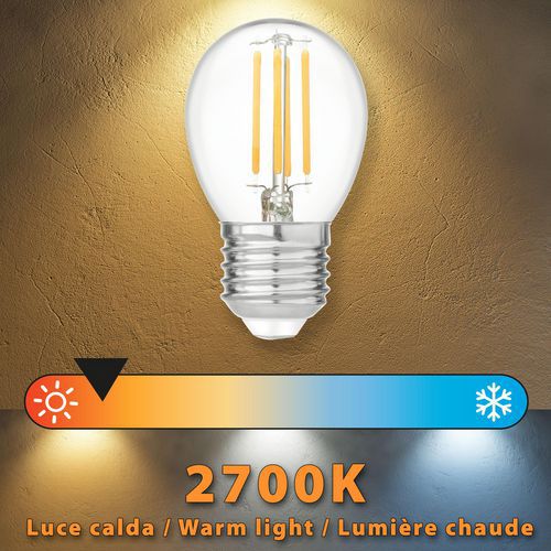 Lâmpada com filamentos LED P45 4 W com casquilho E27 – VELAMP, Fluxo luminoso: 470 lm, Tipo de casquilho: E27