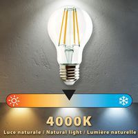 Com uma vida útil de 20 000 horas (bastante superior à dos modelos convencionais disponíveis no mercado), esta lâmpada pode durar mais de 15 anos (com uma utilização diária de 3 horas). A lâmpada LED Velamp produz 1521 lúmenes de luminosidade instantânea, sem ter de esperar que a lâmpada aqueça. Difusor transparente que torna a luz muito semelhante a das antigas lâmpadas incandescentes. A tecnologia LED com filamentos proporciona um feixe extremamente difuso a 330°. Com uma temperatura de cor de 4000 Kelvin, a lâmpada fornece luz branca quente, criando um ambiente confortável em qualquer divisão. Perfeita para todas as divisões da casa, como o quarto, a sala de estar e a casa de banho, bem como para o escritório. Consome 11 W de energia, tem um custo de funcionamento inferior a 3 euros por ano e proporciona poupanças de energia significativas em comparação com uma lâmpada incandescente. Equivalente a uma lâmpada tradicional de 100 W. O elevado índice de reprodução de cores (IRC8