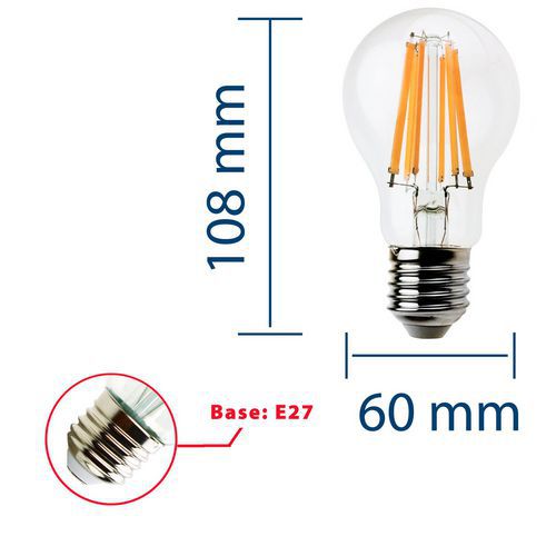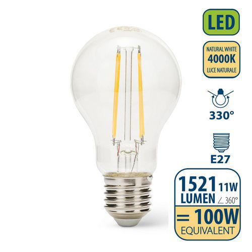 Lâmpada com filamentos LED padrão A60 11 W com casquilho E27 – VELAMP, Fluxo luminoso: 1521 lm