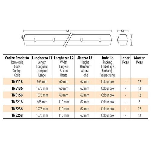 - IP65: resistente a salpicos de água, perfeita para garagens, parques de estacionamento, caves, tetos e salas técnicas.