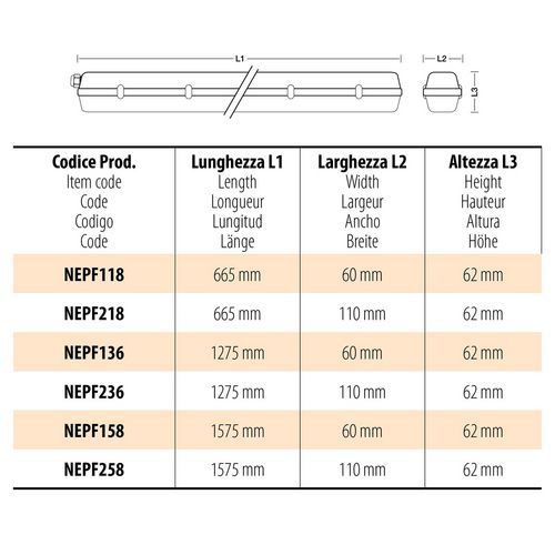 | Nome do artigo | Lâmpada de teto exterior impermeável para tubo LED 60 cm – Velamp, Fluxo luminoso: 0 lm |