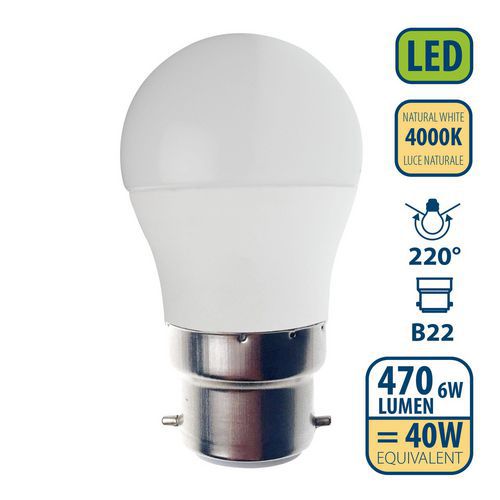 Lâmpada LED SMD miniesférica P45 de 6 W com casquilho B22 – VELAMP