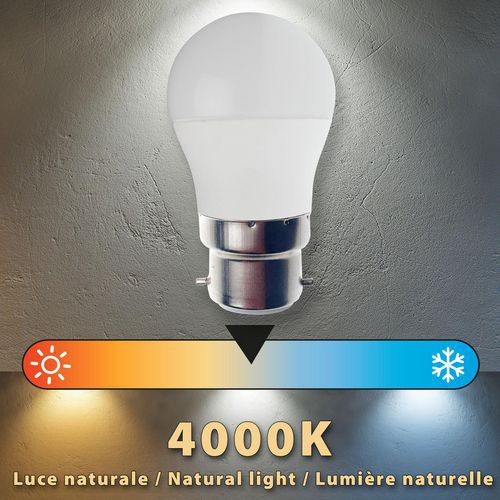 Com uma vida útil de 20 000 horas (bastante superior aos modelos padrão do mercado), esta lâmpada é capaz de durar mais de 15 anos (com uma utilização diária de 3 horas). ATENÇÃO: a ligação B22 por pistola é específica para a França. Oferece 470 lúmenes de luminosidade instantânea, sem ter de esperar que a lâmpada reaqueça. Difusor opalizado que torna a luz homogénea, não encandeante e bastante difusa (ângulo de 220 graus).