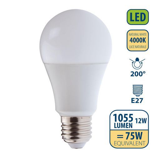 Lâmpada LED SMD padrão A60 de 12 W com casquilho E27 – VELAMP, Fluxo luminoso: 1055 lm