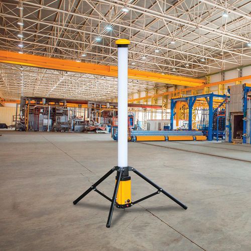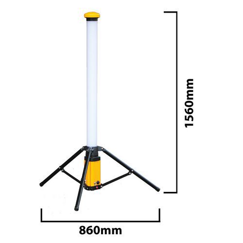 Gigante: com 159 cm de altura e 85 cm de base, a lâmpada LED com tripé recarregável destaca-se definitivamente no estaleiro,.
