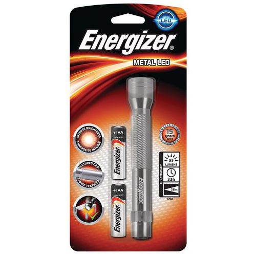 | Nome do artigo | Lanterna Metal LED 2AA – 55 lm – Energizer, Fluxo luminoso: 60 lm, Autonomia: 41 h, Alcance: 38 m |