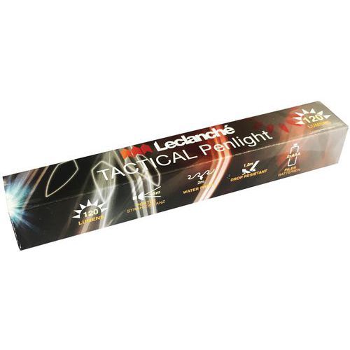 | Nome do artigo | Lanterna Tactical Penlight – 120 lm, Fluxo luminoso: 120 lm, Autonomia: 6 h, Alcance: 46 m |