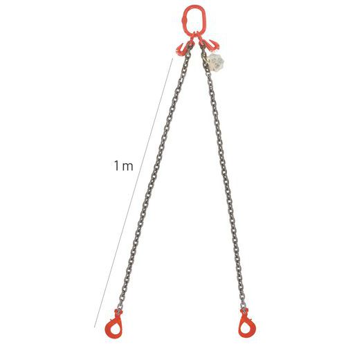 | Nome do artigo | Linga de corrente com 2 cabos com gancho automático, CMU: 1600 kg, N.º de cabos: 2, Corrente Ø: 6 mm |