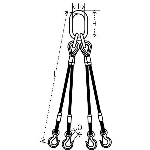 Linga em cabo de aço inoxidável 4 secções - capacidade de carga: 850 a 2300 kg