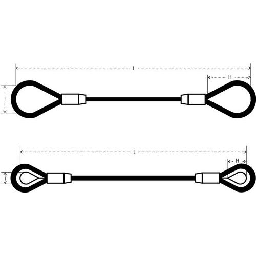 Linga em cabo de aço inoxidável de 1 secção- Grampos reforçados de olhal - Capacidade de 200 a 3200 kg