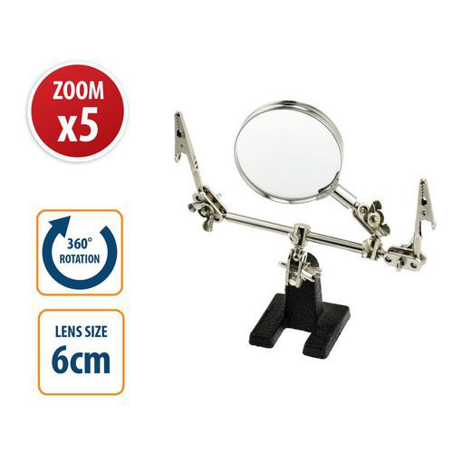Lupa com suporte e clipe ajustável – Velamp, Ampliação: 5x