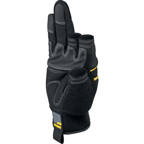 Luva 3 dedos cortados. luva palma pele sintético - costas poliéster/ elastano