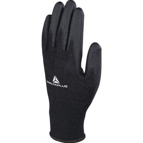 - 100% poliéster. Revestimento poliuretano na palma e ponta dos dedos. Agulha 13.