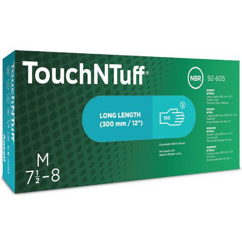 Luvas descartáveis de punho comprido proteção química TouchNTuff® 92-605 – Ansell, Material têxtil: Nitrile