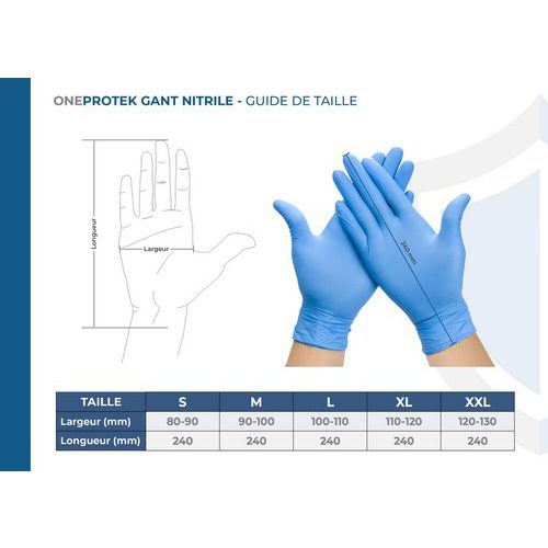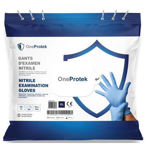 Luva descartável em nitrilo acondicionada em saqueta – OneProtek, Material têxtil: Nitrile