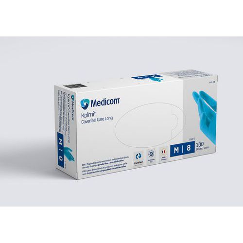 Luva descartável em nitrilo Coverfeel Care com manga comprida – Medicom, Material: Nitrile, Cores: Azul
