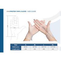 Luva descartável em vinil transparente – OneProtek, Material: Vinil, Uso alimentar: sim, Cores: Transparente