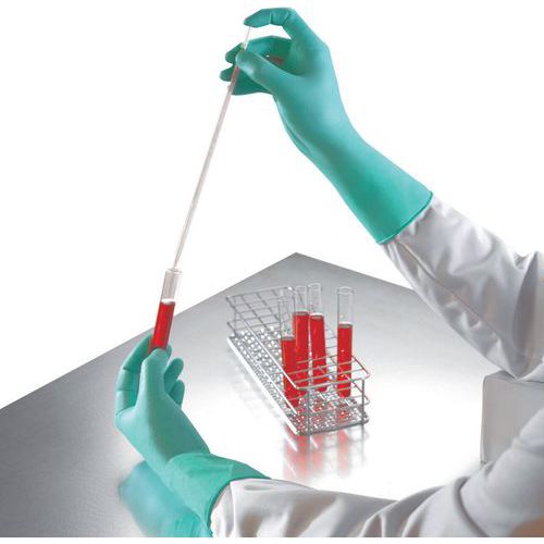 Oferecem uma forte proteção contra salpicos de produtos químicos e contra a maioria dos ácidos e álcoois, e possuem certificação de resistência a produtos químicos EN 374 Tipo B.