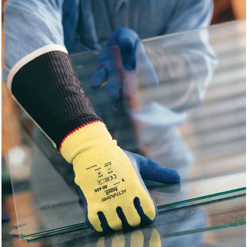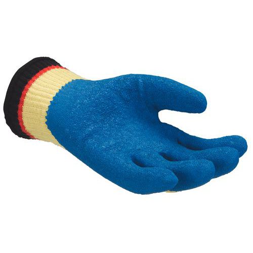 A combinação de um revestimento em látex de borracha natural com um forro em malha Kevlar® permite que estas luvas resistentes à abrasão cumpram as normas ANSI A2/EN ISO C em matéria de resistência aos cortes, permitindo que os trabalhadores manipulem com toda a segurança vidro, metal e materiais plásticos.
