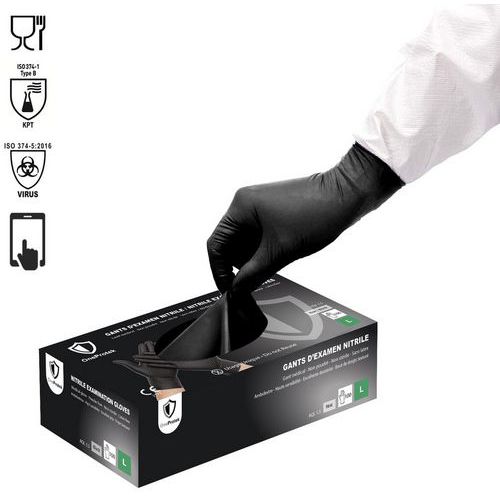 Luvas de exame em nitrilo – Preto – OneProtek, Material: Nitrile, Uso alimentar: sim, Cores: Preto