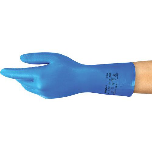 As luvas EPI AlphaTec® 37-310 têm proteção química EN 374 Tipo B contra ácidos leves, lubrificantes, óleos e líquidos.