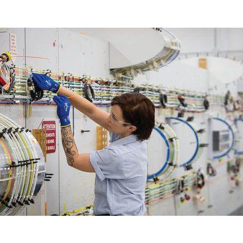 O forro leve de calibre 18 e o revestimento fino das luvas de segurança HyFlex® 11-818 conferem uma sensação de segunda pele. O seu revestimento de nitrilo FORTIX™ – Abrasion Resistance permite-lhes ter uma resistência à abrasão em conformidade com as normas ANSI/EN. O mesmo revestimento em espuma de nitrilo garante uma excelente aderência, especialmente em condições secas. A malha ZONZ™ Comfort Fit das luvas industriais HyFlex® 11-818 alivia a tensão em zonas sujeitas ao stress. Como o seu revestimento é fino e cobre a palma, a proteção das mãos é mais respirável. Forro leve de calibre 18: para umas luvas EPI com uma tactilidade segunda pele. ZONZ™ Comfort Fit: malha otimizada para reduzir a tensão e o esforço.