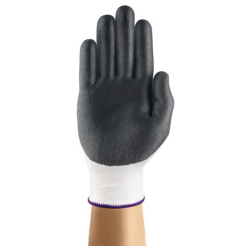 O revestimento em PU na palmadas luvas de trabalho industriais HyFlex® 11-724 garante uma excelente aderência em condições oleosas leves.
