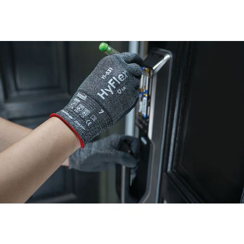 - O forro leve das luvas de segurança industriais HyFlex® 11-531 proporciona uma proteção suave e fácil de manusear para as mãos.