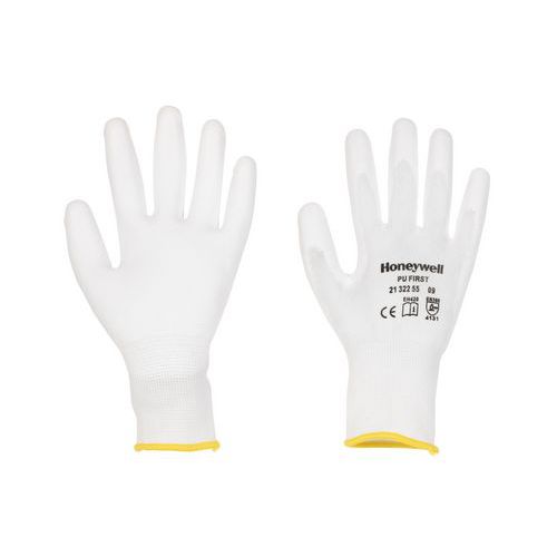 | Nome do artigo | Luvas em PU First White, Revestimento: Poliuretano, Material: Poliamida, Revestimento de superfícies: Palma |