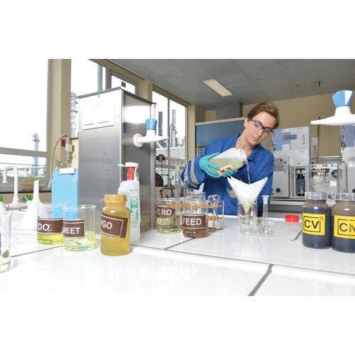 As luvas revestidas a pó proporcionam uma proteção comprovada contra salpicos de produtos químicos perigosos.