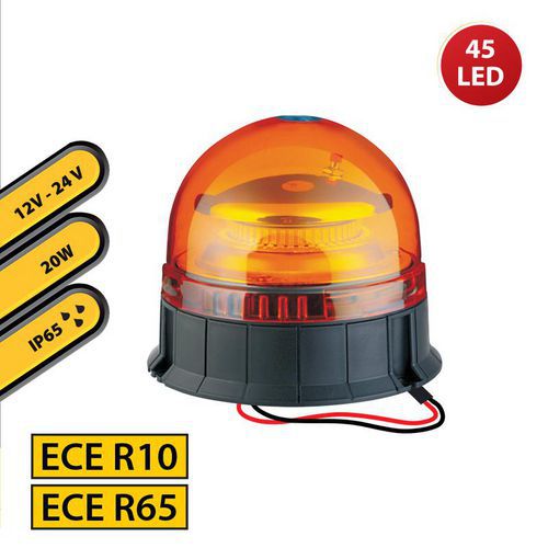 Luz rotativa em LED de 12/24 V com luz LED intermitente que emite uma luz potente a 360 graus, 2 modos de intermitência diferentes e 45 LED de alta intensidade.