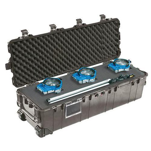 Mala de proteção estanque preta Peli Case 1740 com base da tampa extremamente profunda equipada com quatro suportes de bloqueio, garantindo a máxima estabilidade ao empilhamento.