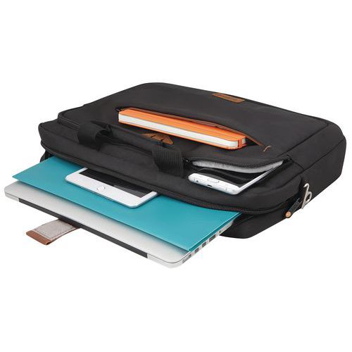 Mala para computador portátil com compartimento próprio para tablet de até 10,5. Prática e segura, inclui uma correia de fixação para o compartimento do computador portátil. Também contém um compartimento para documentos e acessórios diversos. Pegas reforçadas confortáveis, bolsos à frente e atrás com fecho.