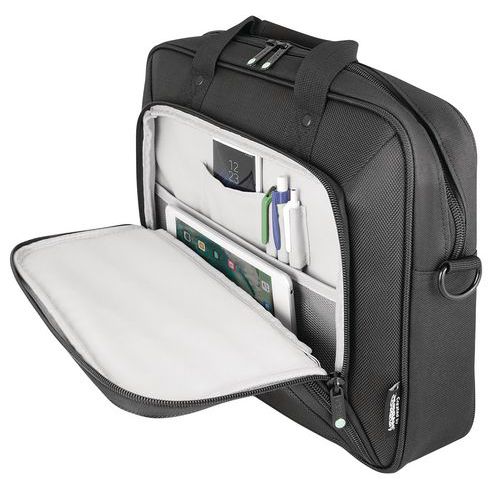Mala para computador portátil com compartimento próprio para tablet de até 10,5. Prática e segura, inclui uma correia de fixação para o compartimento do computador portátil. Também contém um compartimento para documentos e acessórios diversos. Mala para computador portátil com pegas reforçadas confortáveis.